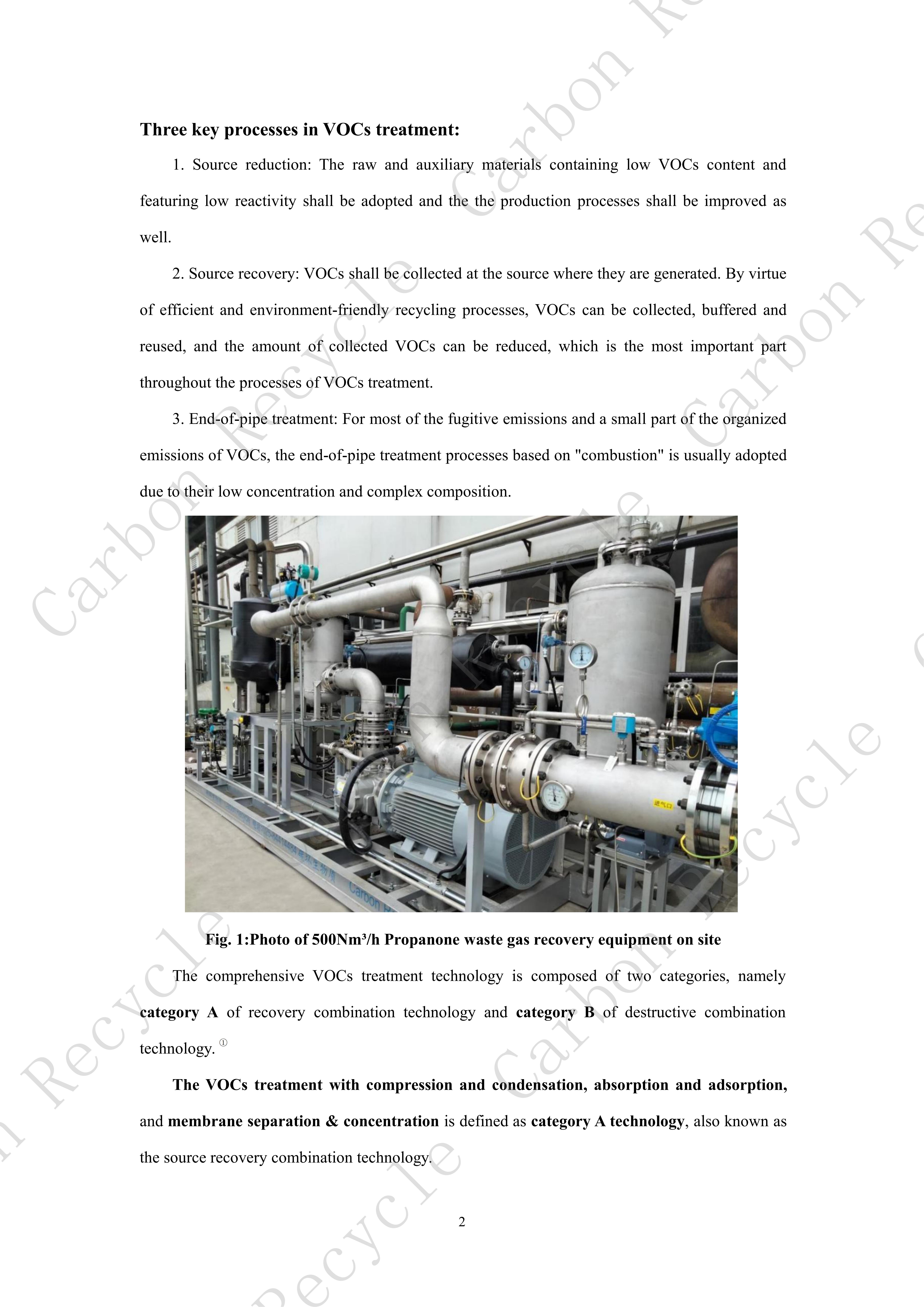 2. Source recovery: VOCs shall be collected at the source where they are generated. By virtue of efficient and environment-friendly recycling processes, VOCs can be collected, buffered and reused, and the amount of collected VOCs can be reduced, which is the most important part throughout the processes of VOCs treatment.